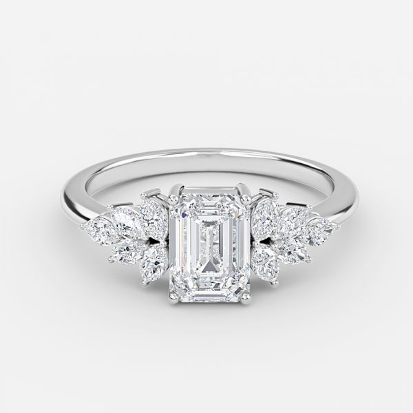 Avian Emerald Three Stone Engagement Ring