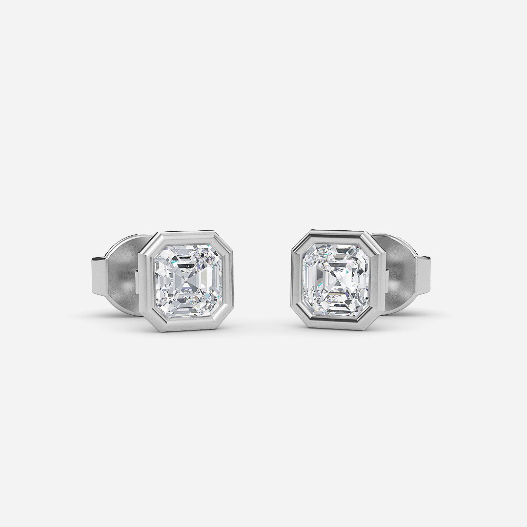 Bezel Set Asscher Diamond Stud Earrings